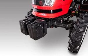 Передние компенсаторные грузы-противовесы массой по 20 кг каждый (до четырех штук, максимально – до 80 кг) позволяют балансировать центр тяжести машины при ее агрегатировании разнообразным прицепными и навесным оборудованием. Это одно из простых и надежных средств противодействия «козлению» трактора, обеспечения его продольной устойчивости при резком превышении нормативной тяговой нагрузки в движении или работе.