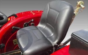 Рабочее место оборудовано комфортным мягким сидением-креслом со спинкой. Плюс штатные резиновые коврики даже в сырую погоду предохраняют ноги тракториста от проскальзывания, а его самого – от повышенного травматизма.