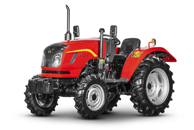 Шины, устанавливаемые на DF 244, – специальные тракторные, с высокими грунтозацепами. Применяемые размерности: на задних колесах 9.5″ – 24″, на передних колесах 6.00″ – 16″. Специальные тракторные шины дополняют полноприводное шасси и многоскоростную трансмиссию, гарантируя достаточную тяговитость и проходимость трактора при решении всех характерных для него рабочих или транспортных задач.