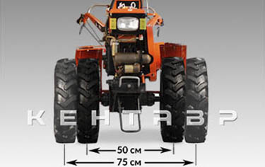 Благодаря удлиненным валам и ступицам можно регулировать колею мотоблока от 50 до 75 см. За счет такой регулировке можно выставлять подходящую колею, которая позволит точно попадать в междурядья при обработке культур.